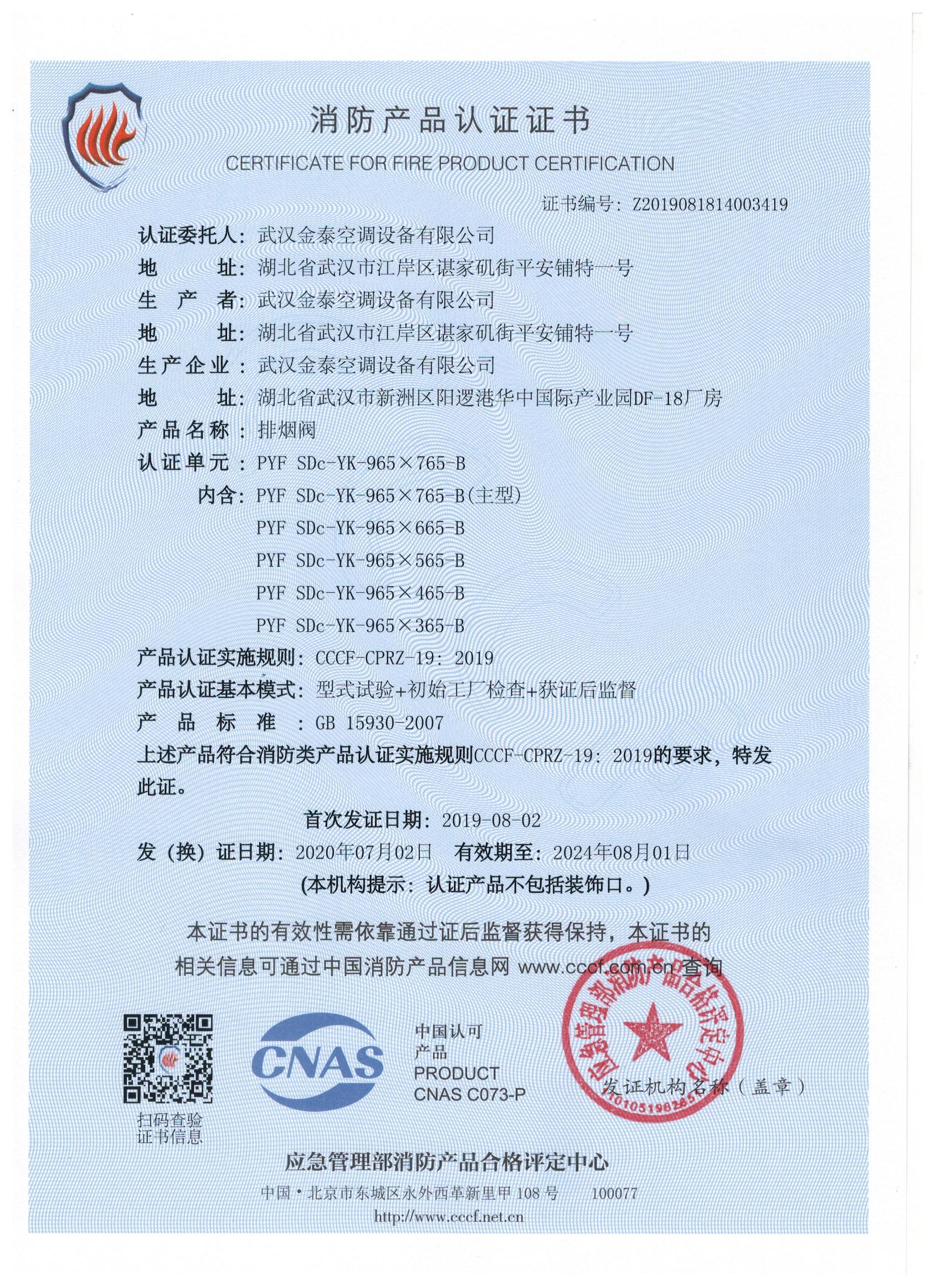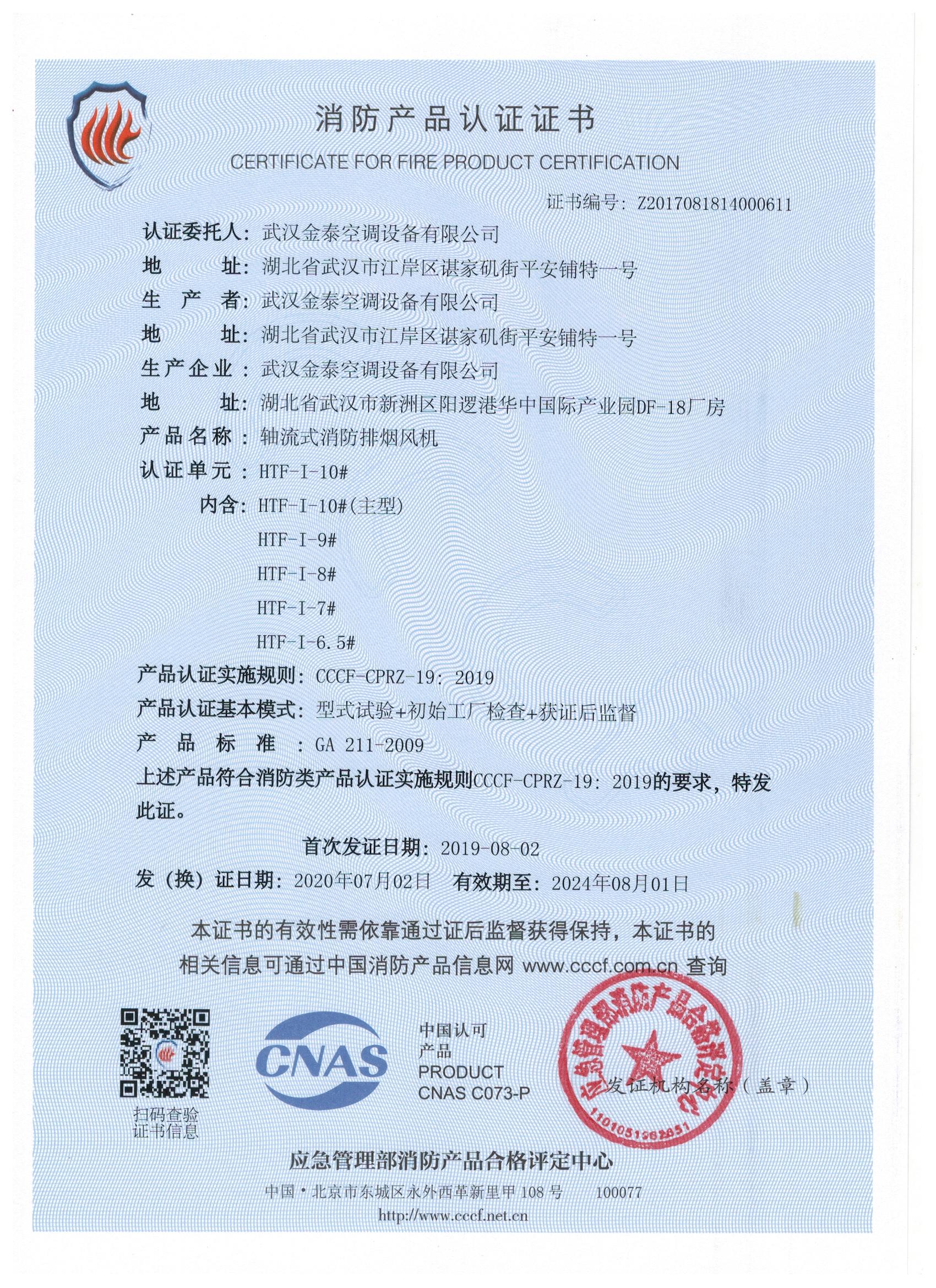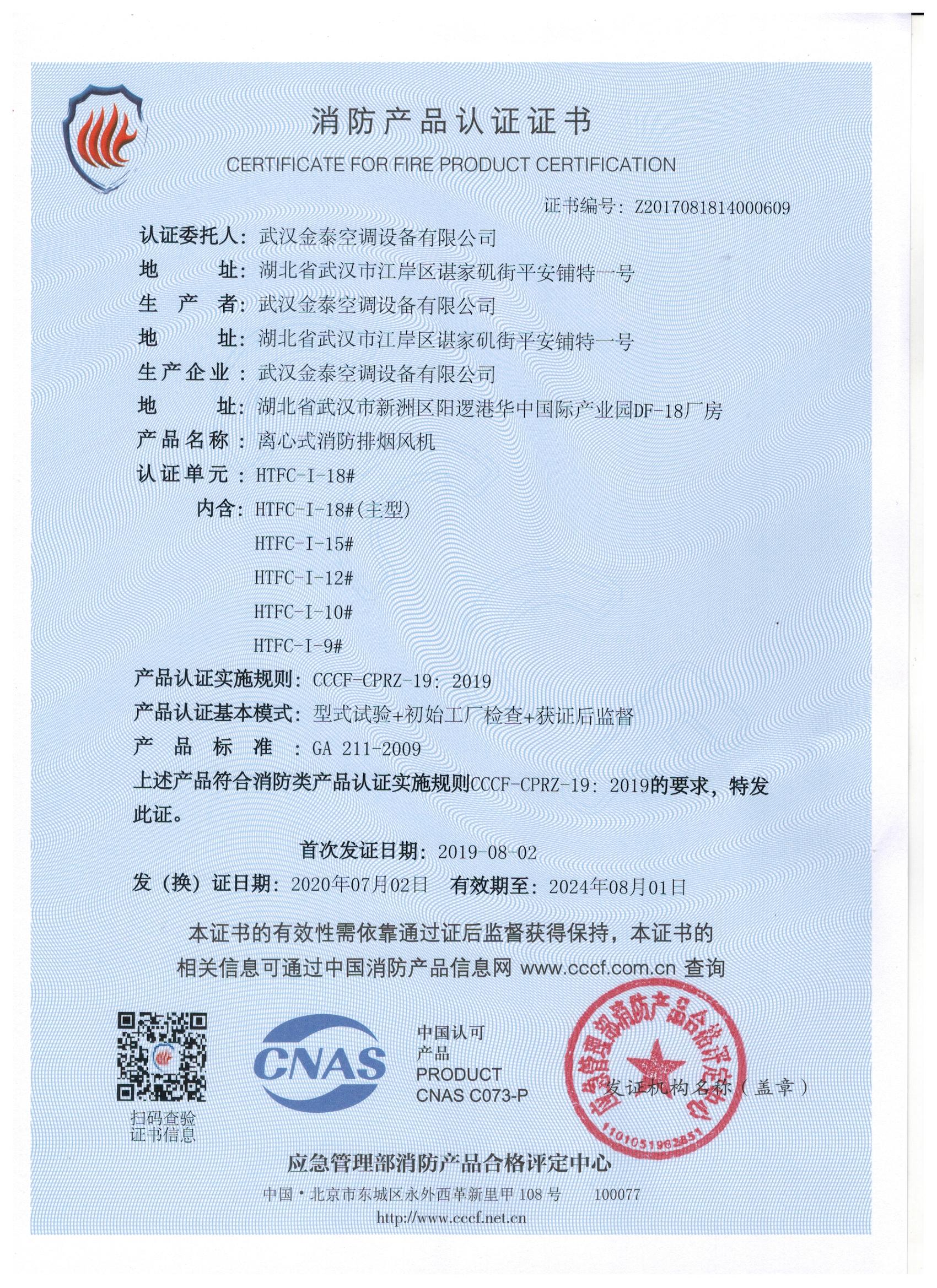 武漢金泰空調(diào)設(shè)備有限公司 是國內(nèi)長期專注于民用風機、工業(yè)風機領(lǐng)域的標桿企業(yè):專業(yè)生產(chǎn)消防排煙風機系列、排煙防火閥系列、一般通風機系列(軸流式、離心式、屋頂式、壁式、隧道式、射流式)、風口、風管等消防及通風設(shè)備。產(chǎn)品經(jīng)公安部消防產(chǎn)品合格評定中心評定符合消防產(chǎn)品CCC標準;經(jīng)中國合格評定國家認可委員會認證的檢驗所檢驗合格;經(jīng)國家防火建材質(zhì)量監(jiān)督檢驗中心(四川中心)火燒實驗,耐火性能達標。